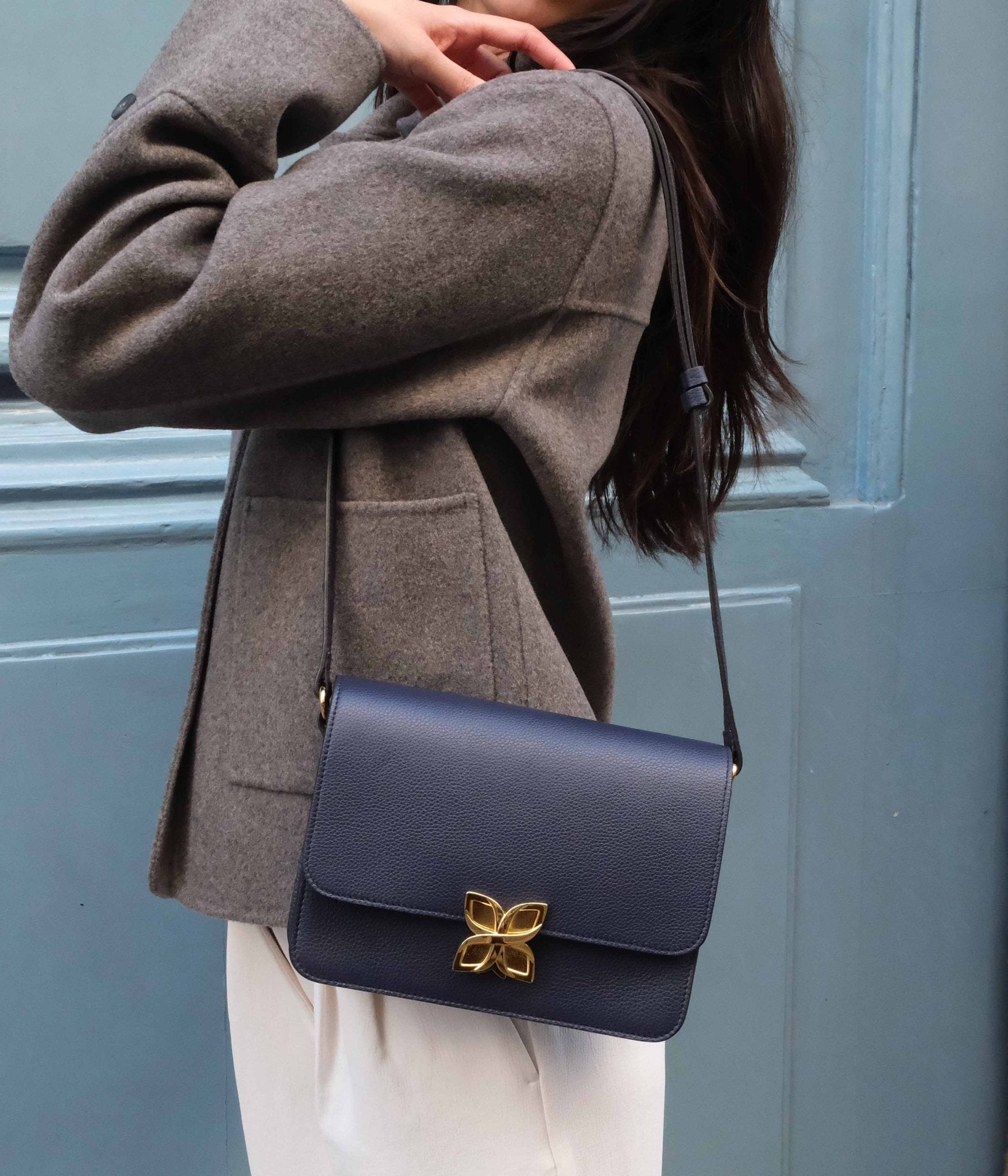 Step into understated elegance with our Hortensia bag in timeless Navy Blue grained calf leather. Carefully handcrafted in our Italian workshop, this design strikes the perfect balance between refined simplicity and modern allure.