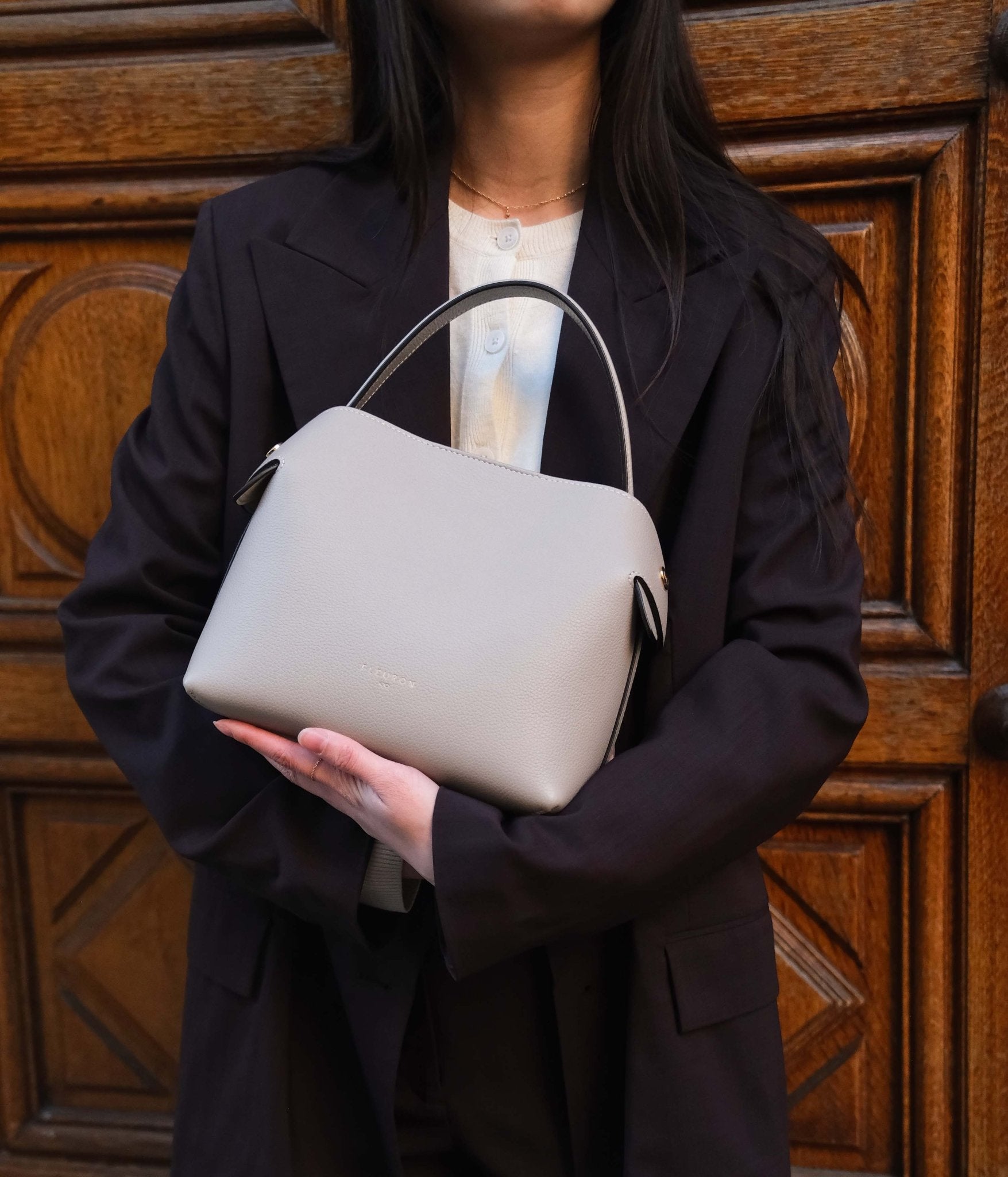 The Medium Swann in Cashmere grained calfskin captivates with its soft, enveloping shade, offering understated elegance in a more generous format. Subtle and refined, this color adapts effortlessly to every silhouette and transitions naturally through the seasons.
