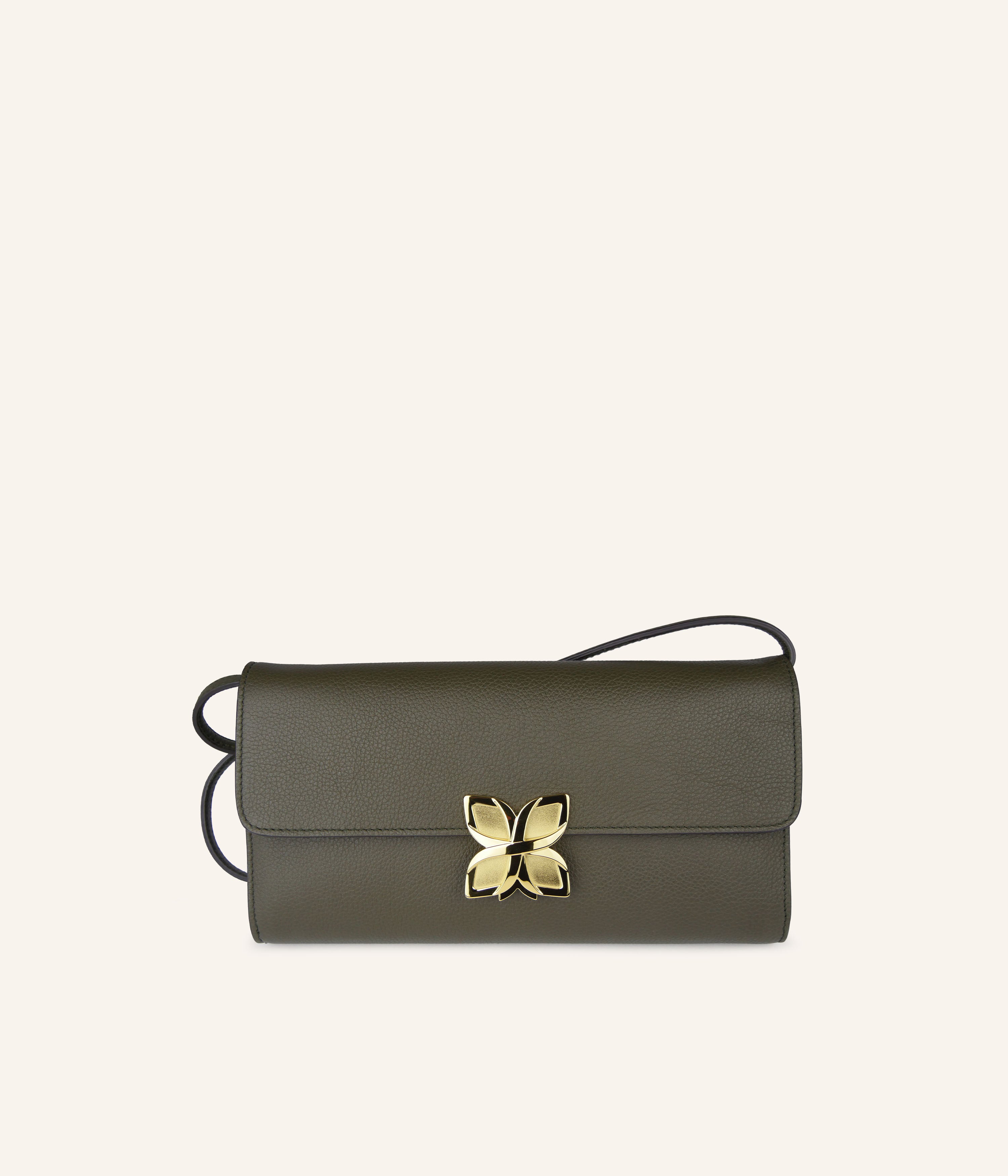 Be inspired by the natural elegance of the Hortensia Clutch in grained calf leather Vert Olive.